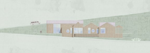 Bygningsdesignet er inspireret af kontekstens simple bygningsformer, som ofte er opløftet og følger tærrenkurverne langs med bygningerne. Samtidig tager designet også hensyn til Kirkens udformning ved at drage inspiration til kirkens geometri.